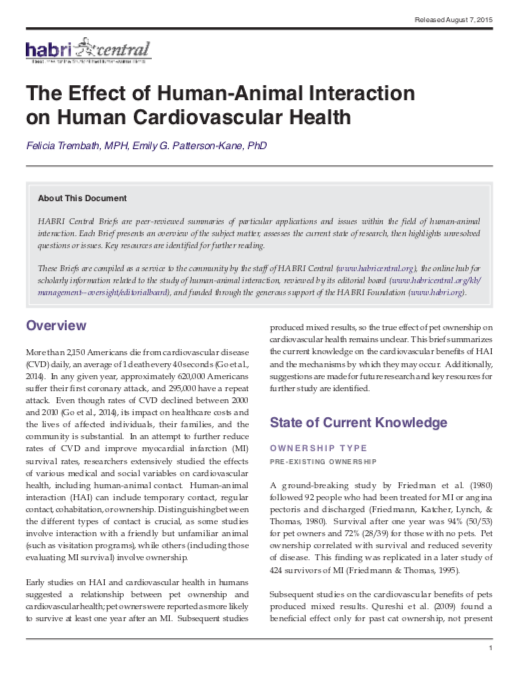 Cette étude menée par des chercheurs de l’Université de Purdue nous propose une synthèse des travaux consacrés à l’étude de l’influence de la médiation animale dans le cas de patients souffrant de pathologies cardiaques.