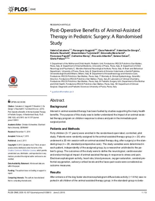 De nombreux travaux ont soulignés l’intérêt de la médiation animale pour la santé humaine. Cette étude menée par des chercheurs italiens a pour objectif de mieux comprendre et mesurer l’impact de la médiation animale sur la douleur et le stress chez des enfants ayant subi une intervention chirurgicale.