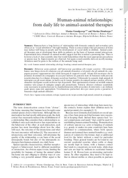 Les hommes ont une longue histoire commune avec les animaux domestiques et de nos jours l’animal de compagnie joue souvent le rôle d’un « substitut social ».
