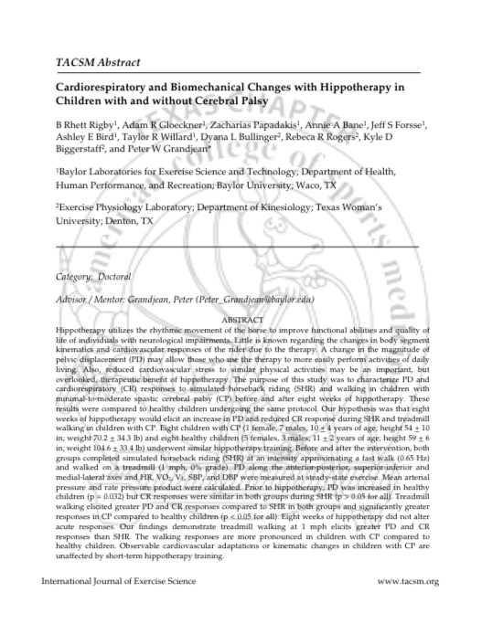 Modifications cardio-respiratoire et biomécaniques induites par l’équithérapie chez les enfants avec et sans infirmité motrice cérébrale